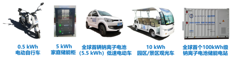 2017年底,中科海鈉研制出48V/10Ah鈉離子電池組應用于電動自行車;2018年,研制出72V/80Ah鈉離子電池組,推出全球首輛鈉離子電池電動汽車。2019年,推出全球首個100千瓦時鈉離子電池儲能電站,首次實現(xiàn)了鈉離子電池在大規(guī)模儲能上的示范應用。