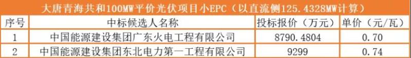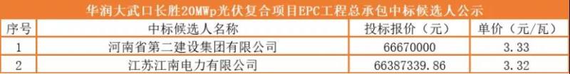 需要注意的是,下述中廣核兩個(gè)項(xiàng)目招標(biāo)公告中要求的并網(wǎng)日期分別為2020年12月30日前和2020年11月20日前完成全部并網(wǎng)發(fā)電,且項(xiàng)目最終并網(wǎng)節(jié)點(diǎn)不可更改;但是兩個(gè)項(xiàng)目的EPC中標(biāo)卻是在近日公示。光伏們查詢了相關(guān)的招標(biāo)公告及公示情況,暫未獲悉其中原因,故該價(jià)格僅供參考。