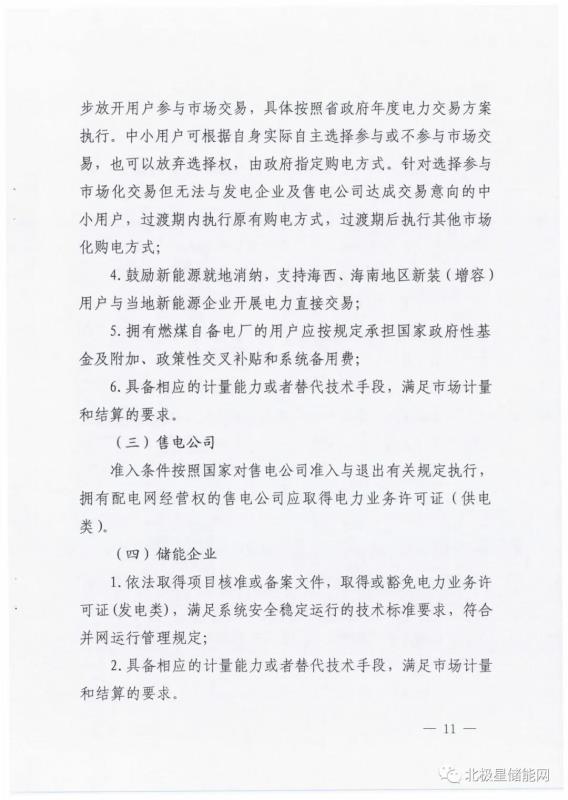 儲(chǔ)能企業(yè)市場(chǎng)準(zhǔn)入條件為滿足系統(tǒng)安全穩(wěn)定運(yùn)行的技術(shù)標(biāo)準(zhǔn)要求,符合并網(wǎng)運(yùn)行管理規(guī)定,且具備相應(yīng)的計(jì)量能力滿足市場(chǎng)計(jì)量和結(jié)算的要求。
