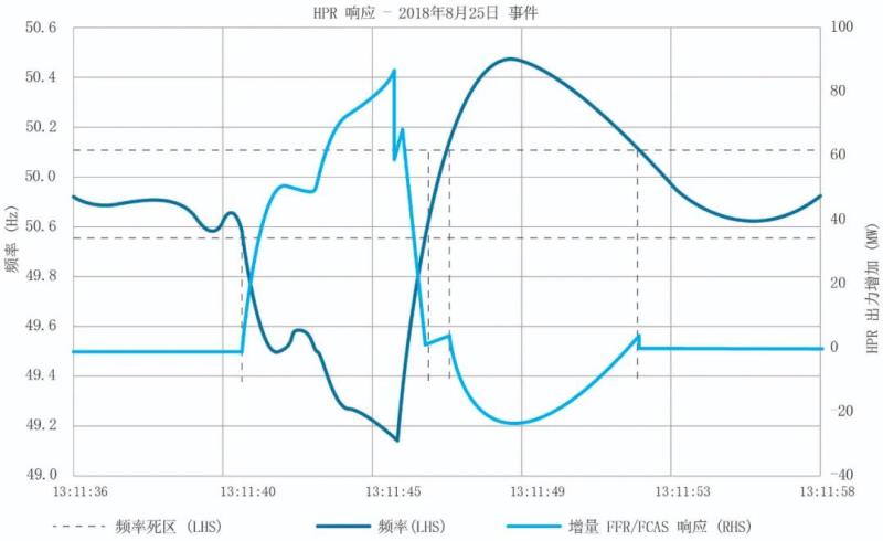 圖7 2018年8月25日Hornsdale在頻率跌落事件中的響應(yīng)