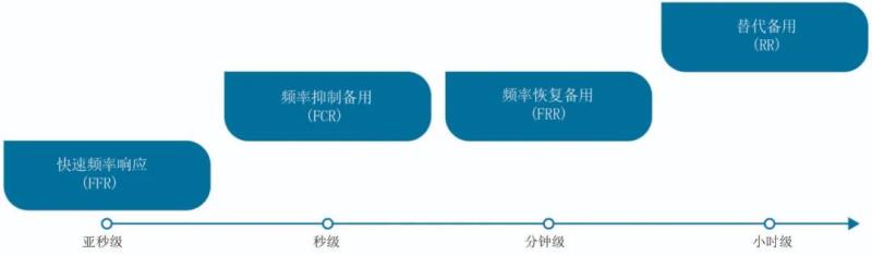 為了保持電力供需平衡,發(fā)電必須時(shí)刻與需求相等。運(yùn)行備用定義為除了滿足實(shí)際負(fù)荷要求之外的額外備用容量。供電和需求之間的任何不匹配會導(dǎo)致電網(wǎng)頻率偏離正常值范圍。如果發(fā)電超過需求,頻率會升高;如果發(fā)電小于需求,頻率會下降。任何頻率的突降一開始會被同步發(fā)電機(jī)的慣性削弱,然后發(fā)電機(jī)調(diào)速器的下垂控制以一定的容量來調(diào)整頻率(非同步控制器也能響應(yīng)。但是,逆變器無固有慣性,只有類似慣性的響應(yīng)特性,其響應(yīng)特性還在研究和開發(fā)中)。此外,電網(wǎng)運(yùn)營商會采購進(jìn)行快速動作響應(yīng)的運(yùn)行備用容量,來對供電和需求之間的不平衡進(jìn)行響應(yīng)。