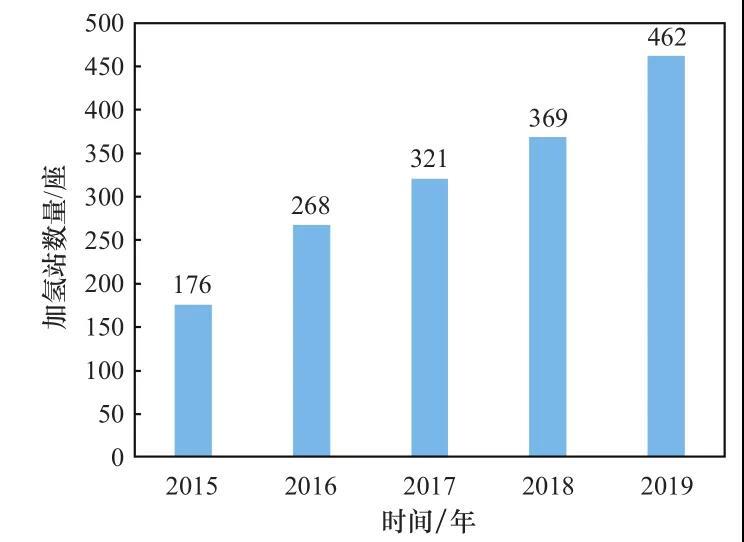圖 2 2015—2019 年全球加氫站數(shù)量