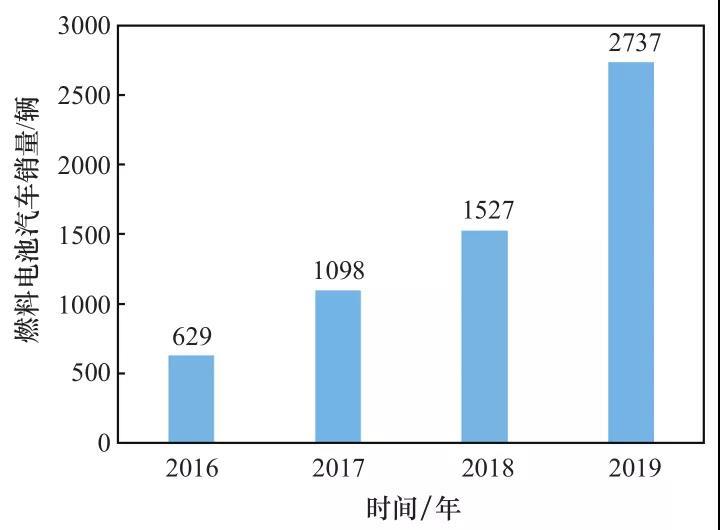 圖 1 我國(guó)歷年燃料電池汽車銷量情況