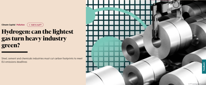 英國《金融時報》發(fā)表文章,題目是:氫:最輕的氣體能使重工業(yè)變綠嗎?(Hydrogen: can the lightest gas turn heavy industry green?)