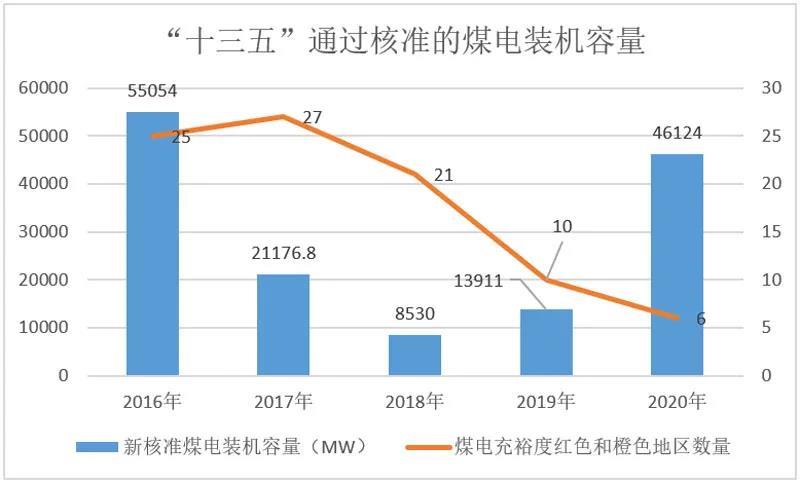 在“十三五”收官之年——2020年,中國各地方發(fā)改委共核準(zhǔn)通過46.1GW煤電裝機容量,較2019年同比增長率攀升231.6%,占“十三五”期間通過總和的31.9%。