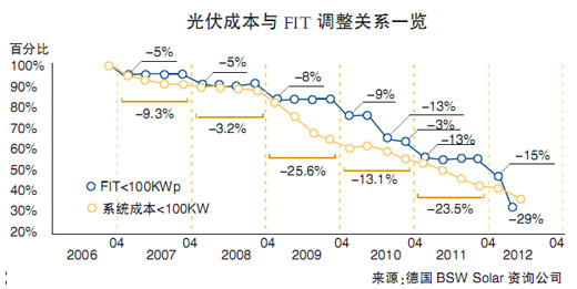 然而兩年不到的時(shí)間,盡管金里奇的話言猶在耳,但太陽能的支持者已經(jīng)開始困惑,德國到底還值不值得學(xué)習(xí)?“德國政府把太陽能產(chǎn)業(yè)給搞砸了。”2000年德國可再生能源法案的主要起草人漢斯·約瑟夫·菲爾把產(chǎn)業(yè)蕭條歸罪于政府決策失誤。不過比起行業(yè)專家身份,菲爾更像是政客,實(shí)際上德國太陽能產(chǎn)業(yè)不景氣并不是當(dāng)前這屆政府造成的。其實(shí)看長遠(yuǎn)些,你會發(fā)現(xiàn)德國仍然在從其行業(yè)先行者的地位中受益。