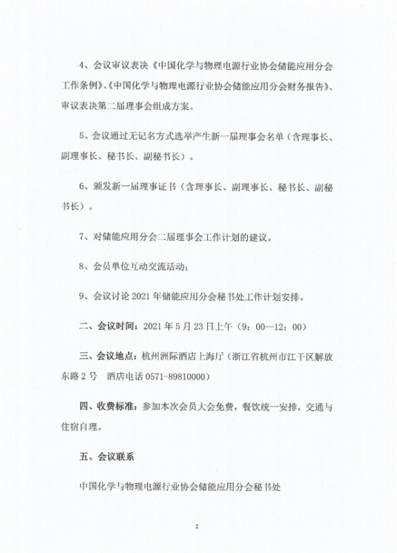 關(guān)于召開中國化學(xué)與物理電源行業(yè)協(xié)會儲能應(yīng)用分會二屆一次會員大會的通知