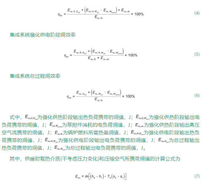 式中,WESP,out為強化供熱階段的輸出功率,W;WERP,out為強化供電階段的輸出功率,W;Wout為總過程的輸出功率,W;Wpump為泵附件耗功,W;QESP,out為強化供熱階段的輸出熱負荷,W;QERP,out為強化供電階段的輸出熱負荷,W;Qout為總過程的輸出熱負荷,W;Qfb為燃料總消耗的熱值,W;Qair為壓縮空氣所攜帶的熱值,W。