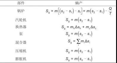 注:Sg為各部件熵產(chǎn),kJ/K;m為進入各部件的流體質(zhì)量流量,kg/s;mh為換熱器熱流體的質(zhì)量流量,kg/s;mc為換熱器冷流體的質(zhì)量流量,kg/s;mi為混合器各股物流的質(zhì)量流量,kg/s;s1為各部件進口流體的熵值,kJ/(kg·K);s2為各部件出口流體的熵值,kJ/(kg·K);sf為隨熱流攜帶的熵流,kJ/(kg·K);?sh為換熱器熱流體的熵值,kJ/(kg·K);?sc為換熱器冷流體的熵值,kJ/(kg·K);?si為混合器各股流體的熵值差,kJ/(kg·K)。