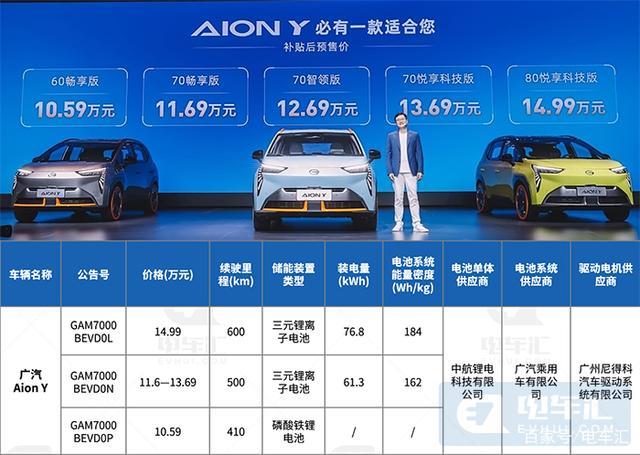 新上車型方面,3月29日廣汽發(fā)布了使用彈匣電池系統(tǒng)安全技術(shù)的AION Y,目前其500km和600km續(xù)航版本車型已經(jīng)進(jìn)入推薦目錄,對應(yīng)售價11.69-13.69萬和14.99萬元;而續(xù)航410km售價10.59萬的磷酸鐵鋰電池版車型則剛進(jìn)入342批公示目錄,預(yù)計之后進(jìn)入第3批推薦目錄。這也是廣汽埃安首次使用磷酸鐵鋰電池,供應(yīng)商同樣是中航鋰電。新車入門版本采用磷酸鐵鋰電池,從而進(jìn)一步降低售價,這大概率會成為未來的趨勢。