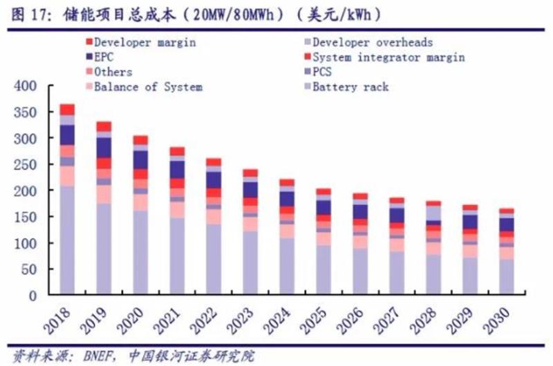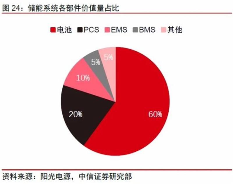 在鋰電池儲(chǔ)能系統(tǒng)中,成本占比最高的三個(gè)部件分別是鋰電池、PCS(逆變器)和BMS(電池管理系統(tǒng)),其中,電池成本占據(jù)系統(tǒng)總成本的比例超過60%。