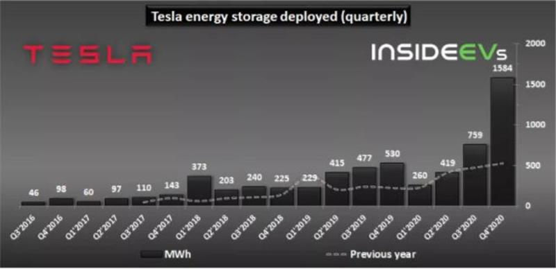 事實(shí)上,即使沒有“得州大停電”的推波助瀾,特斯拉儲(chǔ)能產(chǎn)品也已呈現(xiàn)出爆發(fā)式增長。