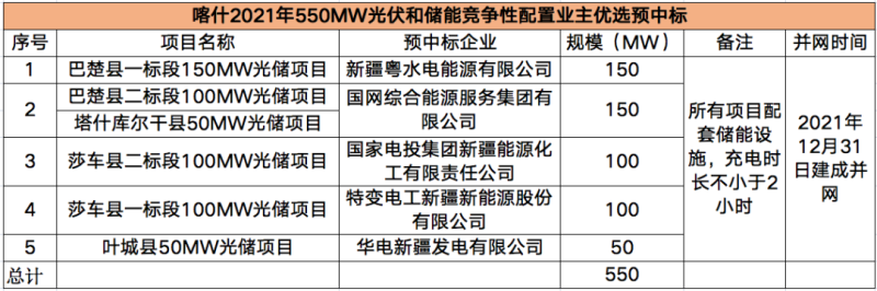 關于喀什地區(qū)莎車縣2021年光伏發(fā)電和儲能設施項目競爭性配置工作結果公示