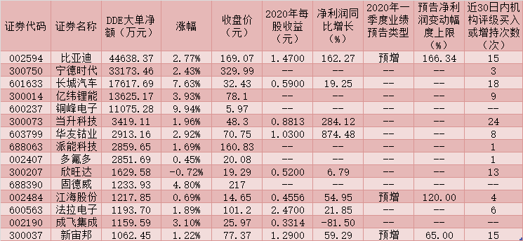 表:4月1日受到千萬(wàn)元以上大單資金追捧的儲(chǔ)能概念股