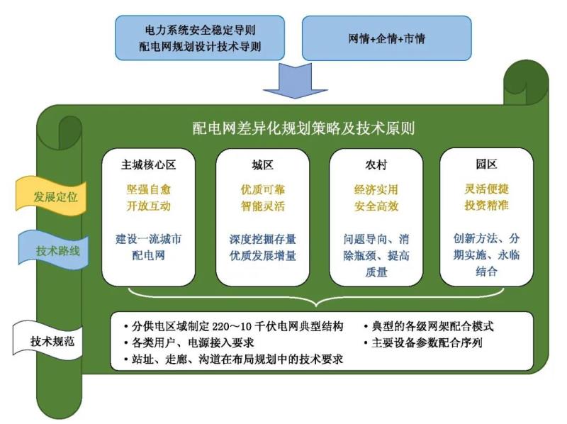 通過研究制定《配電網(wǎng)差異化規(guī)劃策略及技術(shù)原則》,一方面落實(shí)新版規(guī)程規(guī)范,以效率效益為導(dǎo)向協(xié)調(diào)發(fā)展各級(jí)電網(wǎng),體現(xiàn)建設(shè)能源互聯(lián)網(wǎng)方向;另一方面把網(wǎng)情、企情與市情結(jié)合,將全市劃分為主城核心區(qū)、城區(qū)、農(nóng)村地區(qū)和園區(qū),并分別明確技術(shù)路線和建設(shè)標(biāo)準(zhǔn),具有全景應(yīng)用、邊界清晰、使用便捷、路線清晰、指標(biāo)明確的特點(diǎn)。