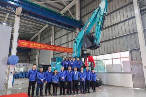 3月31日,全國首臺電動智能挖掘機SWE240FED成功在長沙下線。