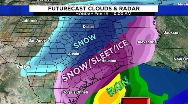 得州開始大降溫,氣象臺曾預測大部分夜晚的氣溫將降至零度以下,凍雨、夾雪、雪都有可能發(fā)生。