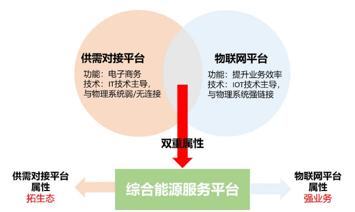 定位一:平臺(tái)屬性上,成為交易、運(yùn)營等海量信息的匯聚樞紐和流量入口,兼具供需對接與物聯(lián)網(wǎng)平臺(tái)雙重屬性。綜合能源服務(wù)平臺(tái)不同于京東、淘寶等電商平臺(tái),其本質(zhì)上還有支撐形成物理系統(tǒng)解決方案的需求,所以具有供需對接平臺(tái)和工業(yè)互聯(lián)網(wǎng)平臺(tái)雙重屬性,并在雙重屬性的驅(qū)動(dòng)下掌握用戶交易信息、物理系統(tǒng)運(yùn)行信息等信息入口,實(shí)現(xiàn)綜合能源服務(wù)業(yè)務(wù)的線上引流匯聚,打造線上線下融合新型生態(tài)。