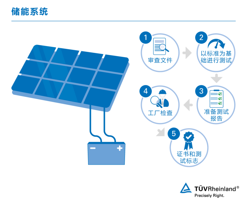 TüV萊茵在國(guó)際上廣受重視的測(cè)試標(biāo)志可向客戶和主管機(jī)構(gòu)證明您的系統(tǒng)已經(jīng)過測(cè)試,符合當(dāng)前適用的標(biāo)準(zhǔn),并展現(xiàn)您在優(yōu)化光伏儲(chǔ)能產(chǎn)品方面的努力。