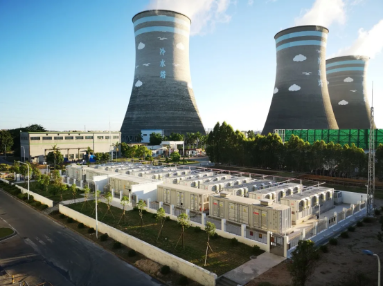 2、廣東茂名某熱電儲能調(diào)頻項(xiàng)目總裝機(jī)容量1150MW,2020年9月正式投運(yùn)。本項(xiàng)目儲能建設(shè)規(guī)模為20MW/10MWh,由4套5MW/2.5MWh級聯(lián)型高壓儲能系統(tǒng)并聯(lián)而成,電池選用磷酸鐵鋰電池。
