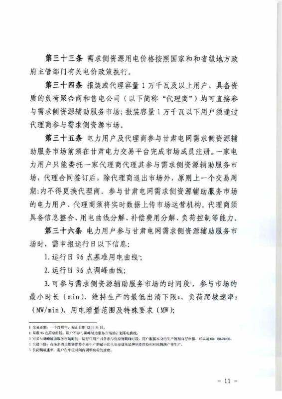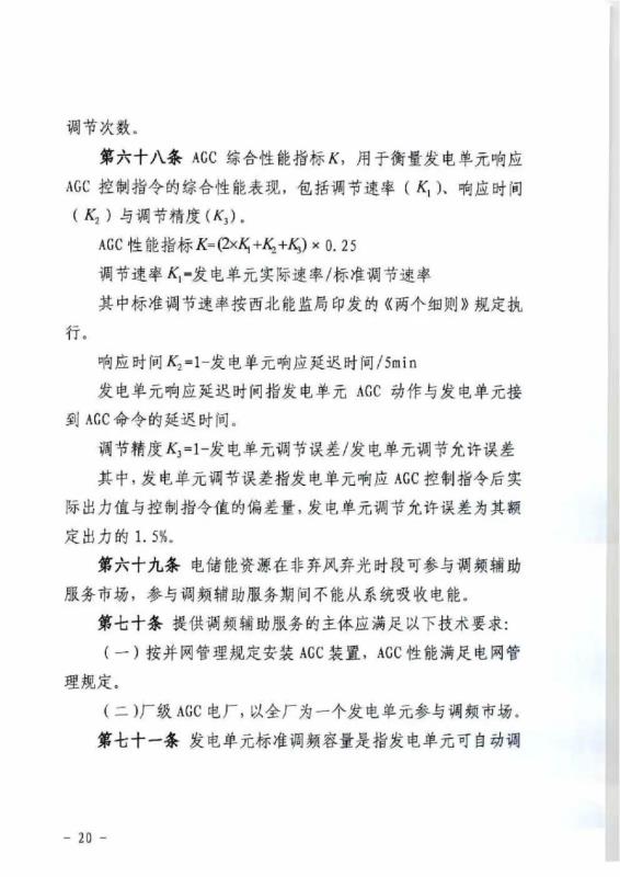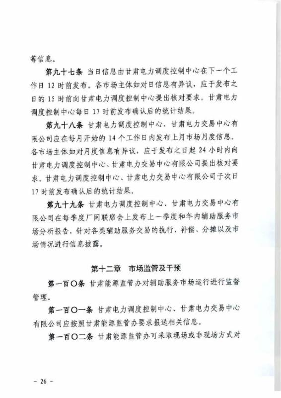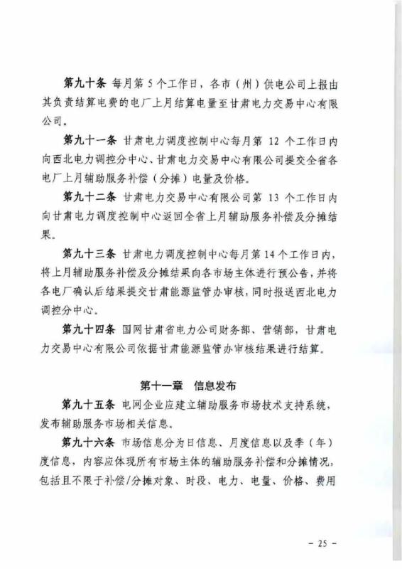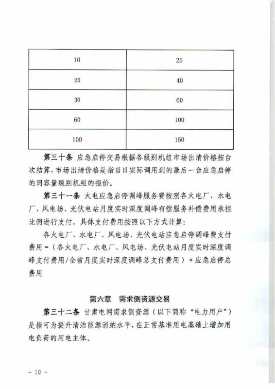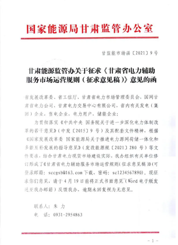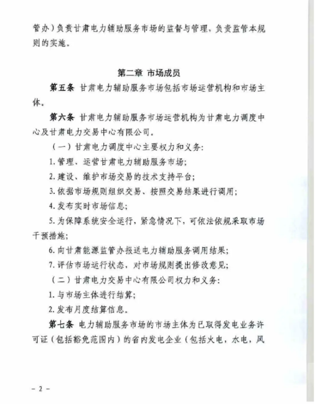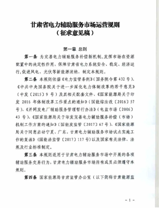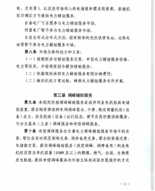 中國儲能網(wǎng)訊:4月10日,國家能源局甘肅監(jiān)管辦公室發(fā)布關(guān)于征求《甘肅省電力輔助服務(wù)市場運(yùn)營規(guī)則(征求意見稿)》意見的函,意見稿規(guī)則較2019年發(fā)布的暫行補(bǔ)償價格有較大改變。調(diào)頻輔助服務(wù)補(bǔ)償價格由上限15元/MW下調(diào)至12元/MW。調(diào)峰輔助服務(wù)申報價格非現(xiàn)貨期間為0.5元/kWh,現(xiàn)貨期間為0.3元/kWh。