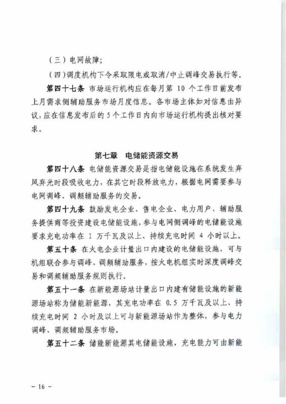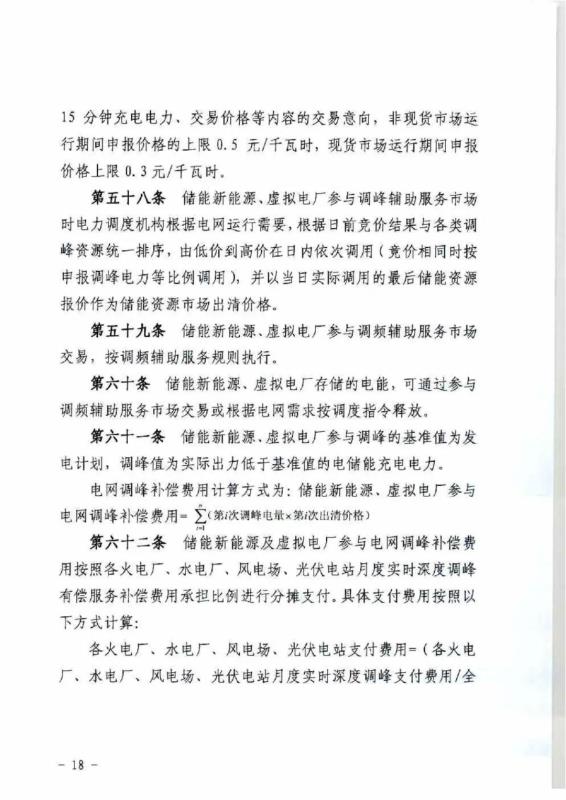 新能源場站儲能或虛擬電廠在調(diào)峰輔助服務(wù)平臺開展集中交易,申報價格由2019年版的上限0.2元/kWh,提升為非現(xiàn)貨市場運(yùn)行期間上限0.5元/kWh,現(xiàn)貨市場運(yùn)行期間上限0.3元/kWh。