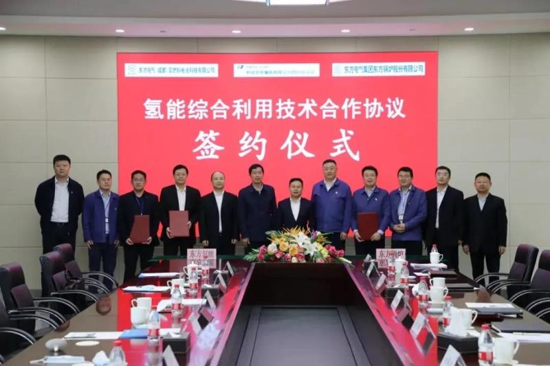 東方氫能董事長楊永、東方鍋爐總經(jīng)理劉兆川、華電集團(tuán)四川分公司執(zhí)行董事仇甜根、總經(jīng)理畢詩方等領(lǐng)導(dǎo)出席并見證簽約儀式。東方氫能副總經(jīng)理胡軍、東方鍋爐黨委副書記黃頡、華電集團(tuán)四川分公司副總經(jīng)理周其平分別代表三方在氫能綜合利用技術(shù)合作協(xié)議上簽字。