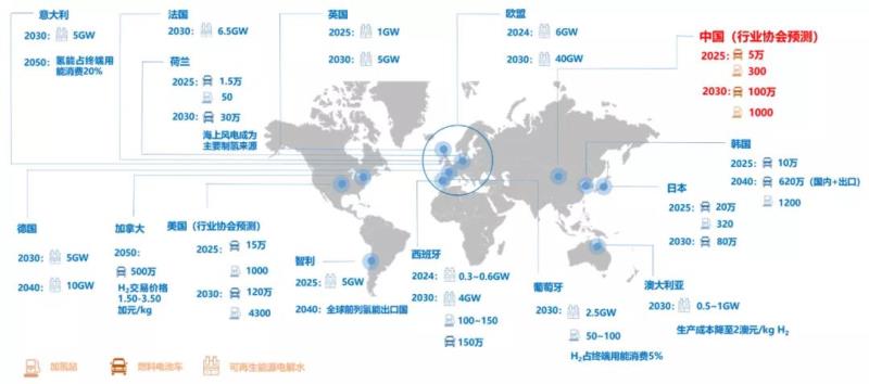 (數(shù)據(jù)來(lái)源:世界各主要國(guó)家氫能發(fā)展戰(zhàn)略規(guī)劃、中國(guó)氫能聯(lián)盟)