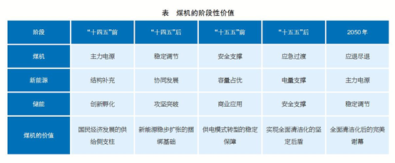 “十四五”后煤電發(fā)展情景描述?!笆奈濉焙螅袌鲂枨蟀l(fā)生了變化,各主體成長階段逐步遞進(jìn),煤電在不同時(shí)期,會體現(xiàn)出不同的特性。以下試著從不同角色的市場性表征來描繪煤機(jī)的階段性價(jià)值(見表)。