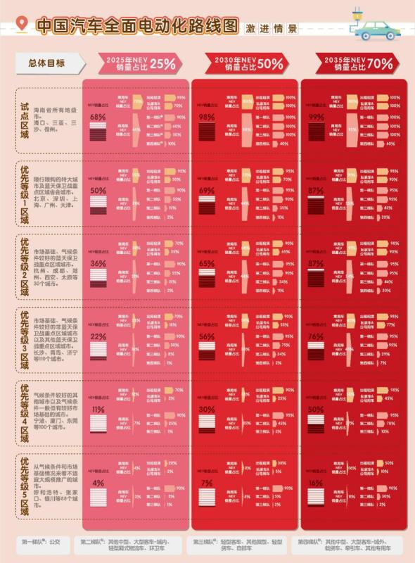 中國汽車全面電動化路線圖激進(jìn)情景