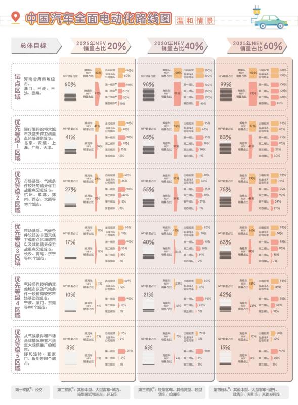 中國汽車全面電動化路線圖溫和情景