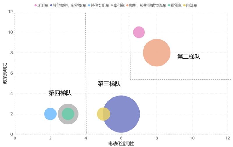 第三梯隊(規(guī)模化推廣):輕型客車;其他微型、輕型貨車;自卸車;
