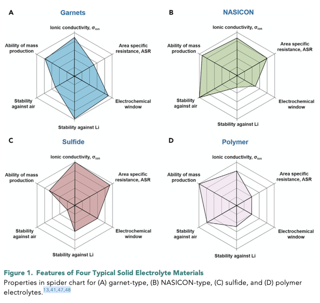 圖5|4 種典型固態(tài)電解質(zhì)性能對(duì)比(圖片來(lái)源:Zhao et al., Solid Garnet Batteries, Joule, 2019)