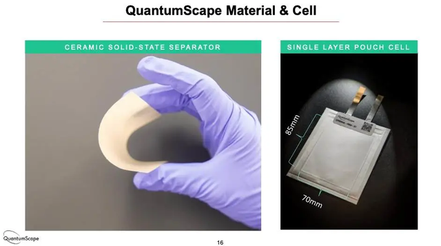 圖12|QuantumScape生產(chǎn)的基于陶瓷材料的固態(tài)隔膜與單層電池片示意圖(圖片來(lái)源:Battery Showcase, QuantumScape, 2020.12)