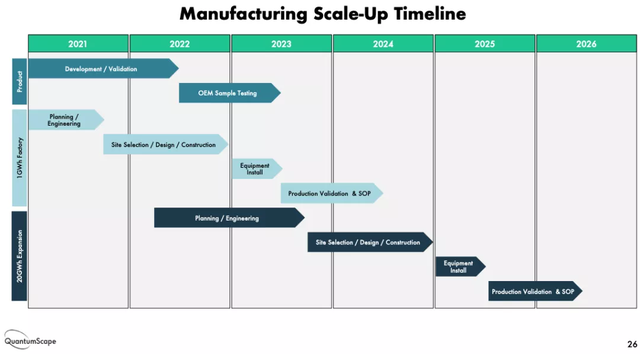 圖13|QuantumScape量產(chǎn)規(guī)劃:大規(guī)模量產(chǎn)裝車(chē)最早可能在2026年(圖片來(lái)源:Analyst Day, QuantumScape, 2020.10)