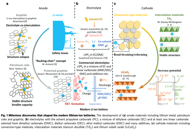 圖16|早期鋰離子電池研發(fā)里程碑(圖片來(lái)源:Xie & Lu, A retrospective on lithium-ion batteries, Nature Communications, 2020)