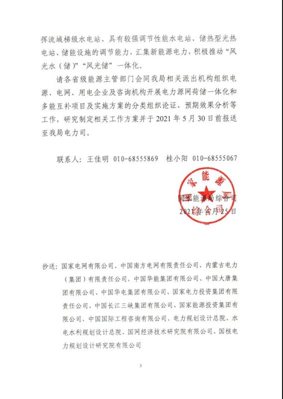 各省級能源主管部門應(yīng)積極開展電力源網(wǎng)荷儲一體化和多能互補項目及實施方案的分類組織論證、預(yù)期效果分析等工作,研究制定相關(guān)工作方案并于2021年5月0日前報送至能源局電力司。