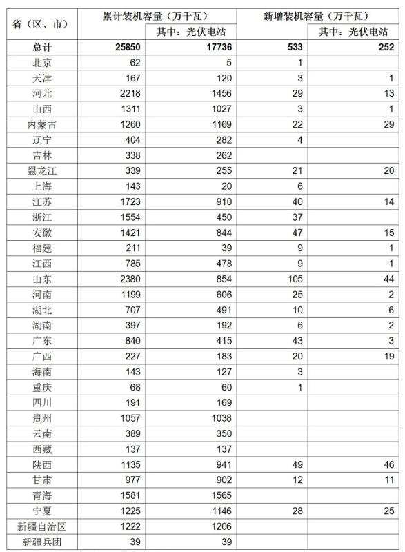 2021年一季度全國光伏發(fā)電建設(shè)運(yùn)行情況