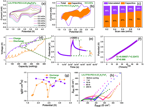 圖2.轉換反應型鋰/氟化鐵全固態(tài)電池的動力學性能