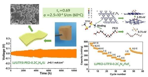 圖1.碳氮微球堆垛增強的聚合物電解質(zhì)及其構造的轉換型鋰/氟化鐵全固態(tài)電池