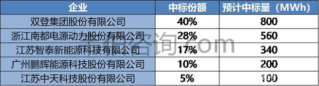 圖表3:2020年4月中國移動(dòng)通信用磷酸鐵鋰電池產(chǎn)品集中采購項(xiàng)目中標(biāo)情況(億元)