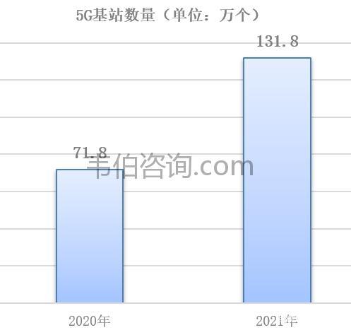 圖表2:2020-2021年全國5G通信基站數(shù)量(萬個(gè))