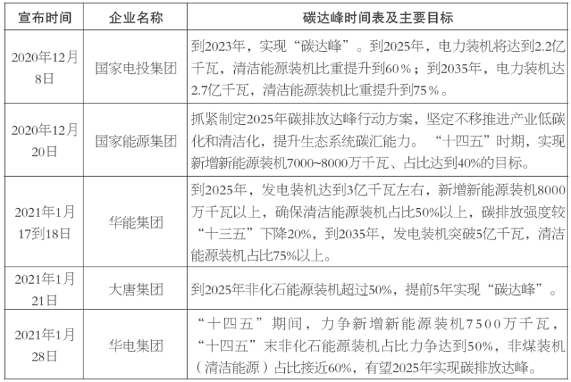 01、五大發(fā)電集團明確碳達峰時間表及主要目標