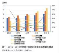 進(jìn)入本世紀(jì)以來,全球新能源發(fā)展迅猛,2019年,世界新能源消費達(dá)到28.98艾焦耳(EJ),是2004年的7.5倍,全球占比從不到1%迅速上升至5%。聚焦近5年,不同地區(qū)新能源消費均穩(wěn)定上升;從增速上來看,亞太及非洲地區(qū)始終保持最高增速(見圖1)。從消費量上看,亞太地區(qū)新能源消費在其所有能源消費中的占比與歐美地區(qū)相比仍有較大差距,預(yù)計2020年后將仍是該領(lǐng)域的增長主力。