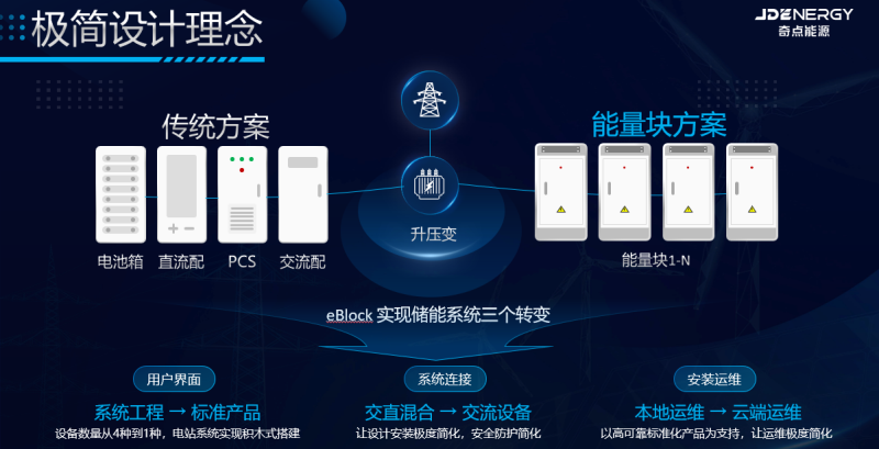 智慧能量塊采用極簡(jiǎn)設(shè)計(jì)理念,實(shí)現(xiàn)了儲(chǔ)能系統(tǒng)集成方案的三個(gè)轉(zhuǎn)變: