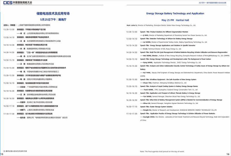 本屆大會(huì)將設(shè)置第十一屆中國(guó)國(guó)際儲(chǔ)能大會(huì)開幕式及“雙碳”目標(biāo)下儲(chǔ)能產(chǎn)業(yè)發(fā)展新路徑專場(chǎng)、新型電力系統(tǒng)與儲(chǔ)能整體解決方案專場(chǎng)、高比例可再生能源與儲(chǔ)能產(chǎn)業(yè)協(xié)調(diào)發(fā)展路徑專場(chǎng)、儲(chǔ)能系統(tǒng)集成專場(chǎng)、儲(chǔ)能安全與檢測(cè)認(rèn)證專場(chǎng)、儲(chǔ)能電池技術(shù)與應(yīng)用專場(chǎng)、儲(chǔ)能電站規(guī)劃與設(shè)計(jì)專場(chǎng)、國(guó)際儲(chǔ)能標(biāo)準(zhǔn)與市場(chǎng)準(zhǔn)入專場(chǎng)、電力輔助服務(wù)及現(xiàn)貨交易專場(chǎng)、儲(chǔ)能電站并網(wǎng)與調(diào)度專場(chǎng)、儲(chǔ)能安全與系統(tǒng)集成專場(chǎng)、新型儲(chǔ)能技術(shù)及應(yīng)用專場(chǎng)、綜合能源服務(wù)與車電互聯(lián)專場(chǎng)、氫儲(chǔ)能與燃料電池專場(chǎng)等14個(gè)專場(chǎng)論壇。