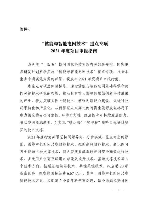 附件6:“儲(chǔ)能與智能電網(wǎng)技術(shù)”重點(diǎn)專項(xiàng)2021年度項(xiàng)目申報(bào)指南