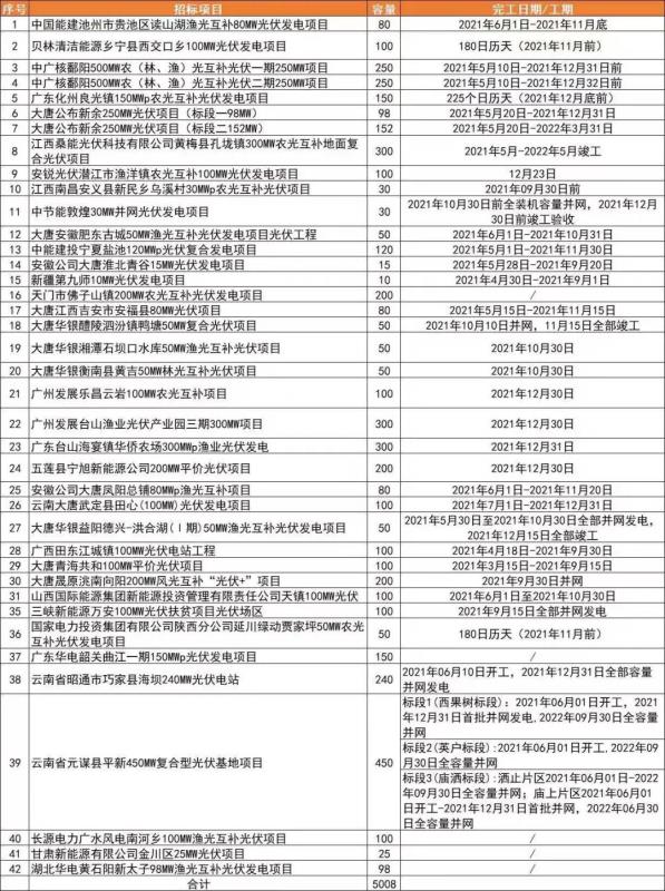 根據(jù)項(xiàng)目表格可以看出,本次統(tǒng)計(jì)的項(xiàng)目并網(wǎng)時(shí)間大部分集中于三、四季度。不過需要注意的一點(diǎn)是,雖然項(xiàng)目EPC招標(biāo)已經(jīng)啟動(dòng),并且在招標(biāo)公告中也明確了項(xiàng)目的并網(wǎng)和竣工時(shí)間,但是項(xiàng)目能否全容量順利并網(wǎng)仍受今年產(chǎn)業(yè)鏈價(jià)格波動(dòng)以及供應(yīng)情況的影響。