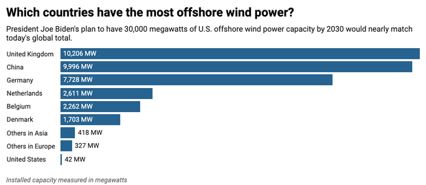 在歐洲,許多國(guó)家的政府已經(jīng)降低了該行業(yè)的監(jiān)管風(fēng)險(xiǎn),海上風(fēng)能的成本下降速度比專家們預(yù)期的要快得多,達(dá)到每兆瓦時(shí)50美元左右。如果美國(guó)風(fēng)電場(chǎng)實(shí)現(xiàn)這樣的成本,那么靠近東海岸大型城市中心的海上風(fēng)電將具有競(jìng)爭(zhēng)力,實(shí)現(xiàn)追歐洲、趕中國(guó)的目標(biāo)。
