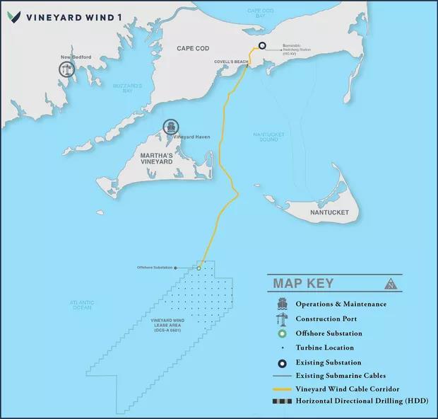 據(jù)美國(guó)媒體報(bào)道,2021年5月11日美國(guó)政府發(fā)布了對(duì)Vineyard Wind風(fēng)電場(chǎng)項(xiàng)目的最終聯(lián)邦批準(zhǔn),這是一個(gè)公用事業(yè)規(guī)模的風(fēng)電場(chǎng),已經(jīng)規(guī)劃了十多年。該風(fēng)電場(chǎng)的開發(fā)商計(jì)劃在距離馬薩諸塞州瑪莎葡萄園島15英里的大西洋海域安裝62臺(tái)巨型渦輪機(jī),容量足以為40萬戶家庭提供清潔能源。